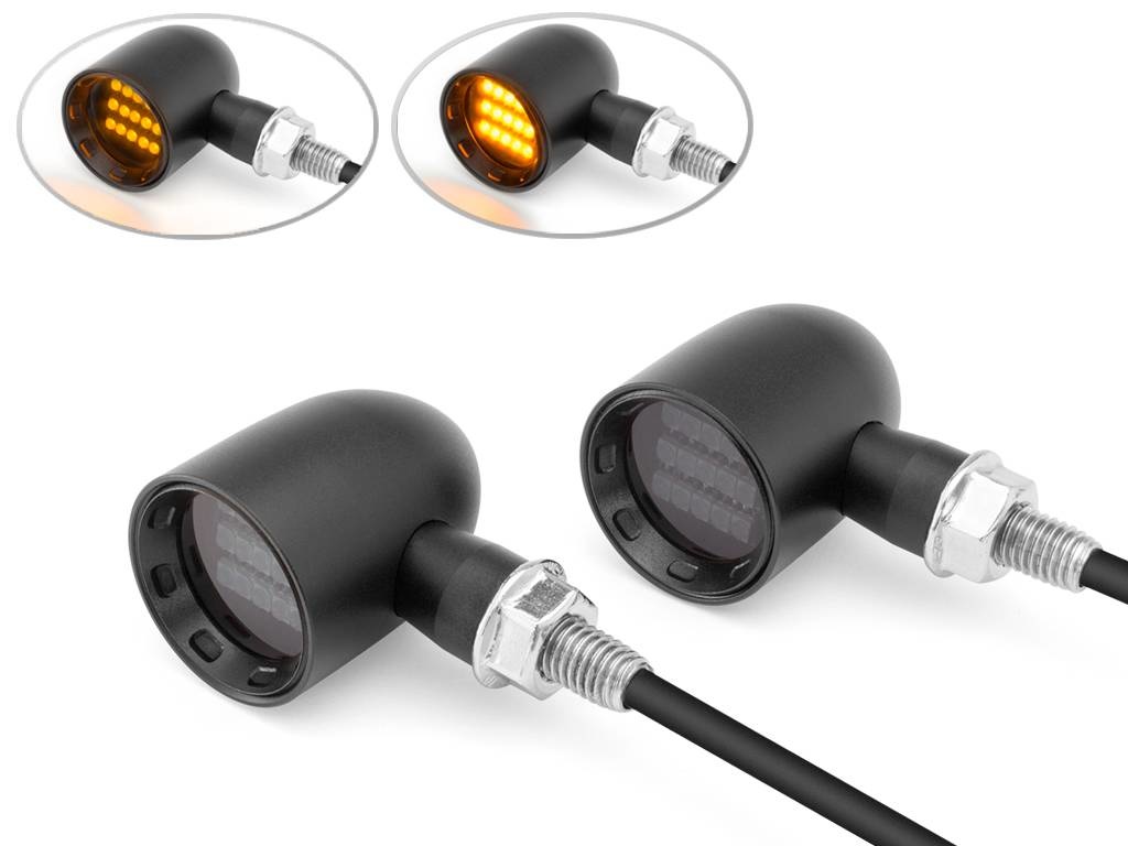 Deze hoogwaardige knipperlichten worden vervaardigd uit massief 6061 billet-aluminium. Intern zijn ze voorzien van superintensieve super heldere LED's met een smoke lens. Ze zijn super klein en super helder.