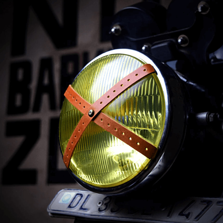 Het Koplamp kruis is onze ode aan de Café Racer stijl en cultuur. Het bekende koplamp kruis is een terugblik op de goede oude tijd van het motorrijden en een eerbetoon aan de racers die de Café Racer look hebben beïnvloed. Afgewerkt in leer, straalt het karakter en geschreeuw van de Rocker Boy-levensstijl uit.