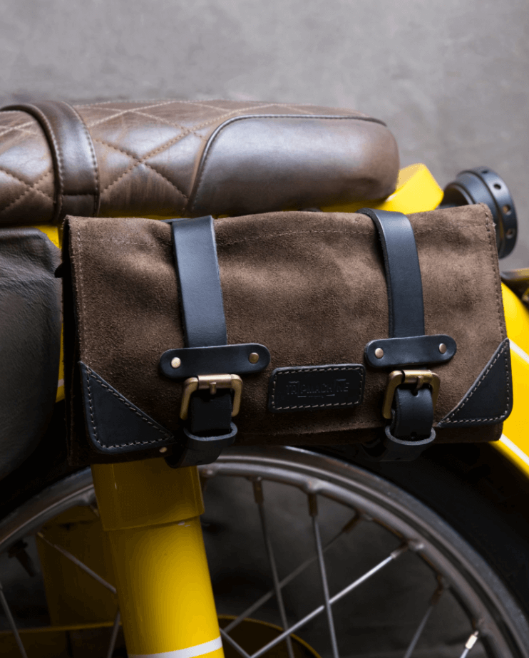 Hij kan eenvoudig op de motorfiets worden gemonteerd, zodat u hem niet in een tas hoeft te doen. Het speciale waterbestendige suède zorgt ervoor dat het weer weinig effect op de tas heeft. Dit is wat het bevat:
