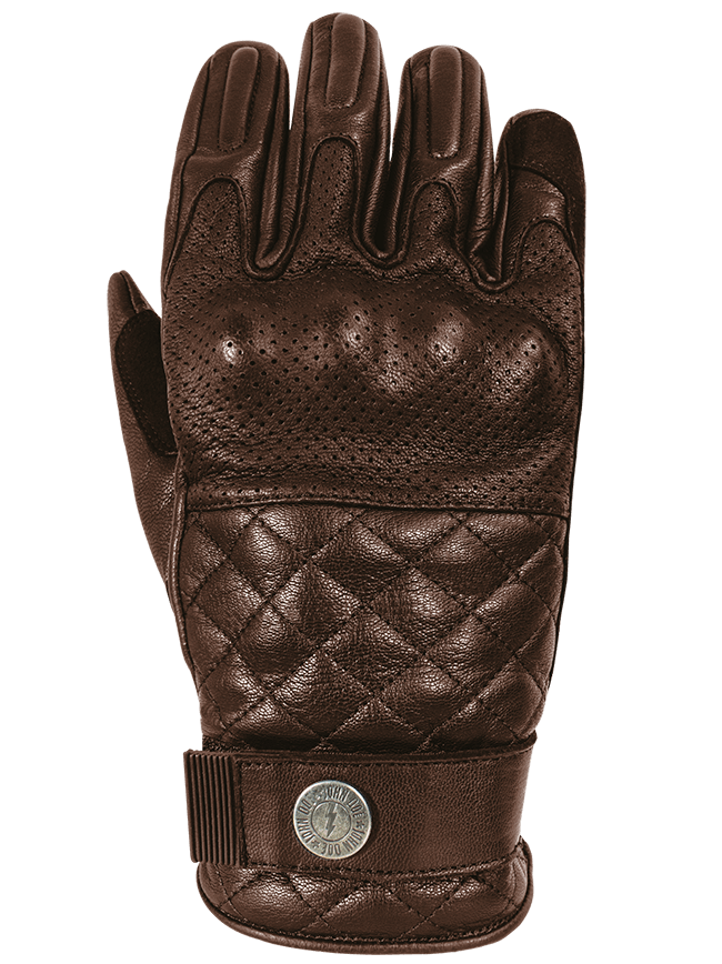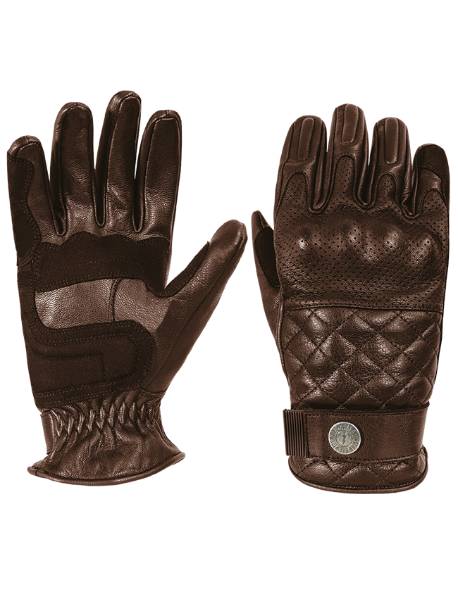 Tracker handschoen met protective fabric met haar perfecte silhouet gecombineerd met hoogwaardige kwaliteit en elegante details, zoals de decoratieve stiksels aan de buitenkant van de hand, speelt de Tracker in de absolute topklasse van motorhandschoenen. Een extra verstelbare riem met metalen embleem op de pols rondt de traditionele stijl van de klassieke handschoen perfect af.