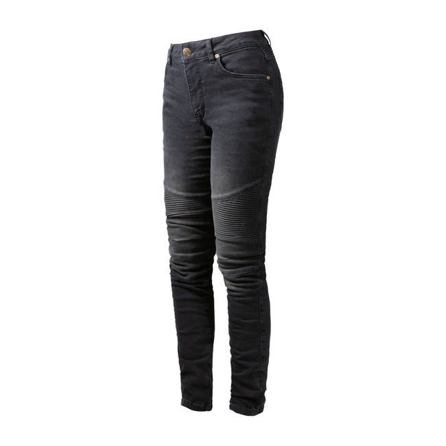 The John Doe Betty Biker jeans is a modern slim-fit, midcut waist jeans with the cool looks through the stretch panels above the knees and on the lower back. This water-repellent and breathable jeans is fully made from XTM-Fiber for your protection. This is a fiber technology made from the blend the DuPont Kevlar / Coolmax and Lycra. Also you have armour pockets built into the knee and hip. The Betty Biker Jeans is fully CE certified.