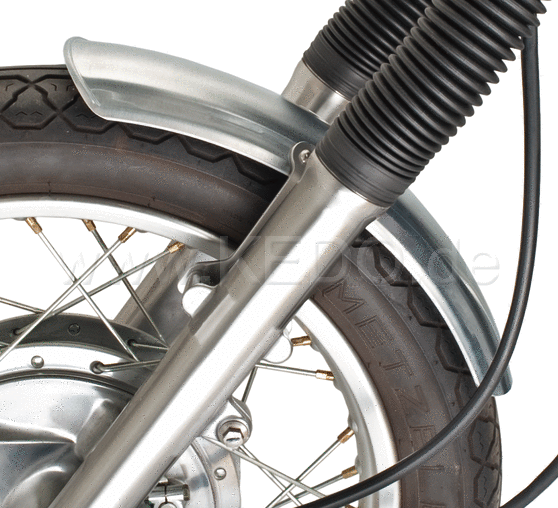 Afstand hart op hart gaten op voorpoten/voorvork is 55mm Afstand van deze gaten naar het gat in het spatbord is ongeveer 105mm.