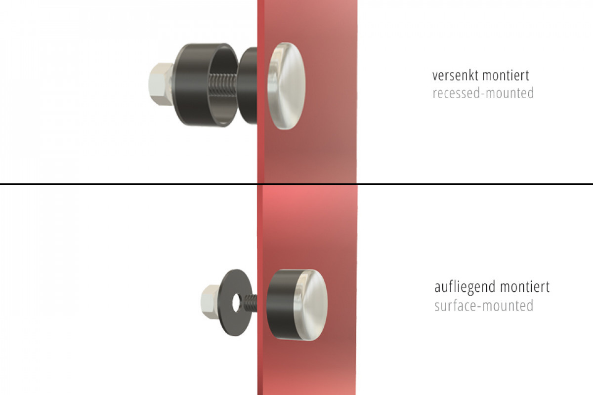 LED-keuzemodules geschikt voor inbouw of opbouw, zwarte aluminium ring met getint glas, E-keurmerk.