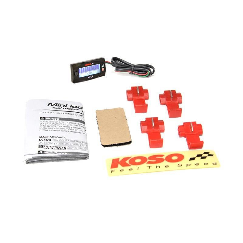 Benzine meter van Koso, deze teller werkt op 12v. Zie het schema hier onder voor alle specificaties.