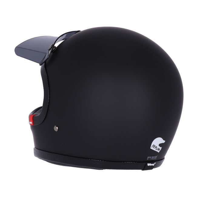 Avontuur, zonder goede reden. Het is wat de Roeg-crew drijft, het is waar we van houden, en daarom hebben we de Peruna gemaakt. Of je nu met vrienden een rommeltje maakt, of eindelijk op pad gaat voor die Afrikaanse woestijntrektocht waar je van gedroomd hebt, je hebt een Peruna nodig. De ultieme full-face reisbuddy voor waar de reis je ook brengt. De helm is gemaakt van 'RQ LIGHT' glasvezel schaal met een multi-density EPS voering en in twee ergonomische schaalmaten. Voorzien van een klassieke dubbele D-ring verstelbare kinband met microtech fleece vulling, gunmetal grijze geïntegreerde vizier/schild drukknopen, Microtech fleece comfort voering die verwijderbaar en wasbaar is, met premium geperforeerde lederen details, ECE-R22.05 goedkeuring, RQ XXL retro trim en verwijderbare dark smoke doorschijnende klep. Los verkrijgbare klep in meerdere kleuren om hem helemaal naar je eigen smaak te maken.