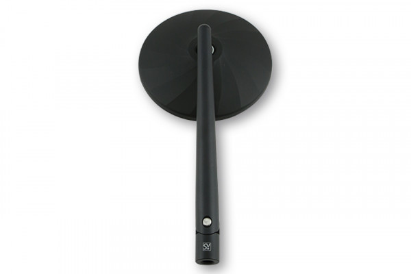 Hoge kwaliteit ronde spiegel met verstelbare arm en kunststof kop. Voor uw veiligheid wordt de spiegel geleverd met een tweede scharnier, zodat er extra instelmogelijkheden zijn. Het turbine patroon aan de achterzijde van de spiegel zorgt voor goed ogende afwerking. De spiegel is E-gekeurd.