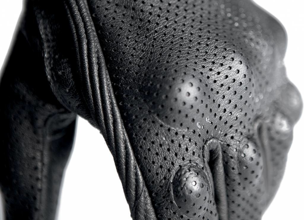 Soepel schapenleer voldoet aan het comfort, geïntegreerde kunststof knokkelbepantsering voor de vervelende ontmoetingen met het asfalt. Tevens een leren palm van Touchtec om uw touchscreen-apparaten te gebruiken zonder de handschoen te verwijderen.