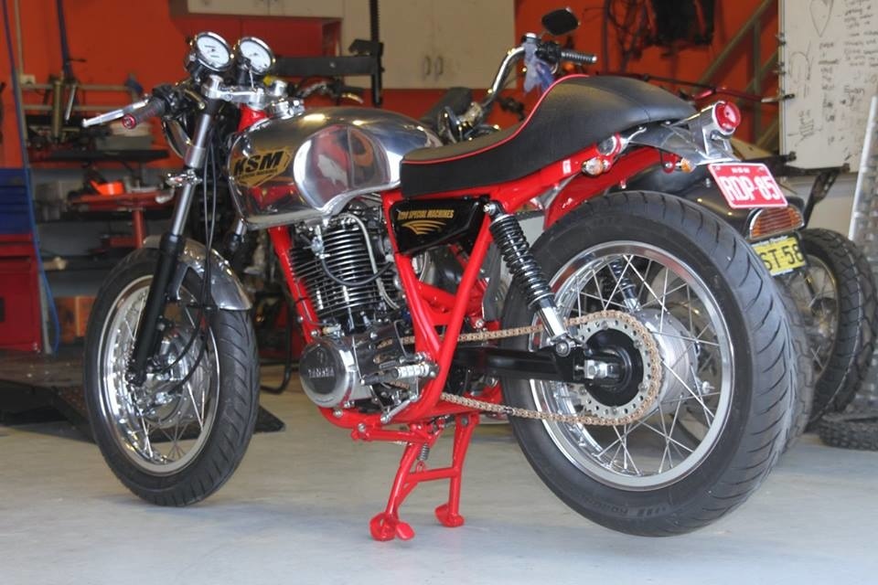 SR400 / 500 / T Zadel 'Classic Racer' Zwart met rode belijning