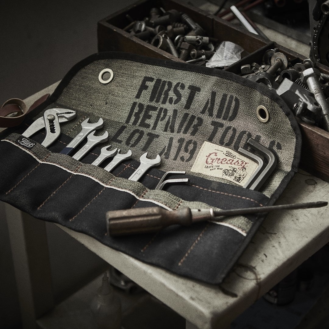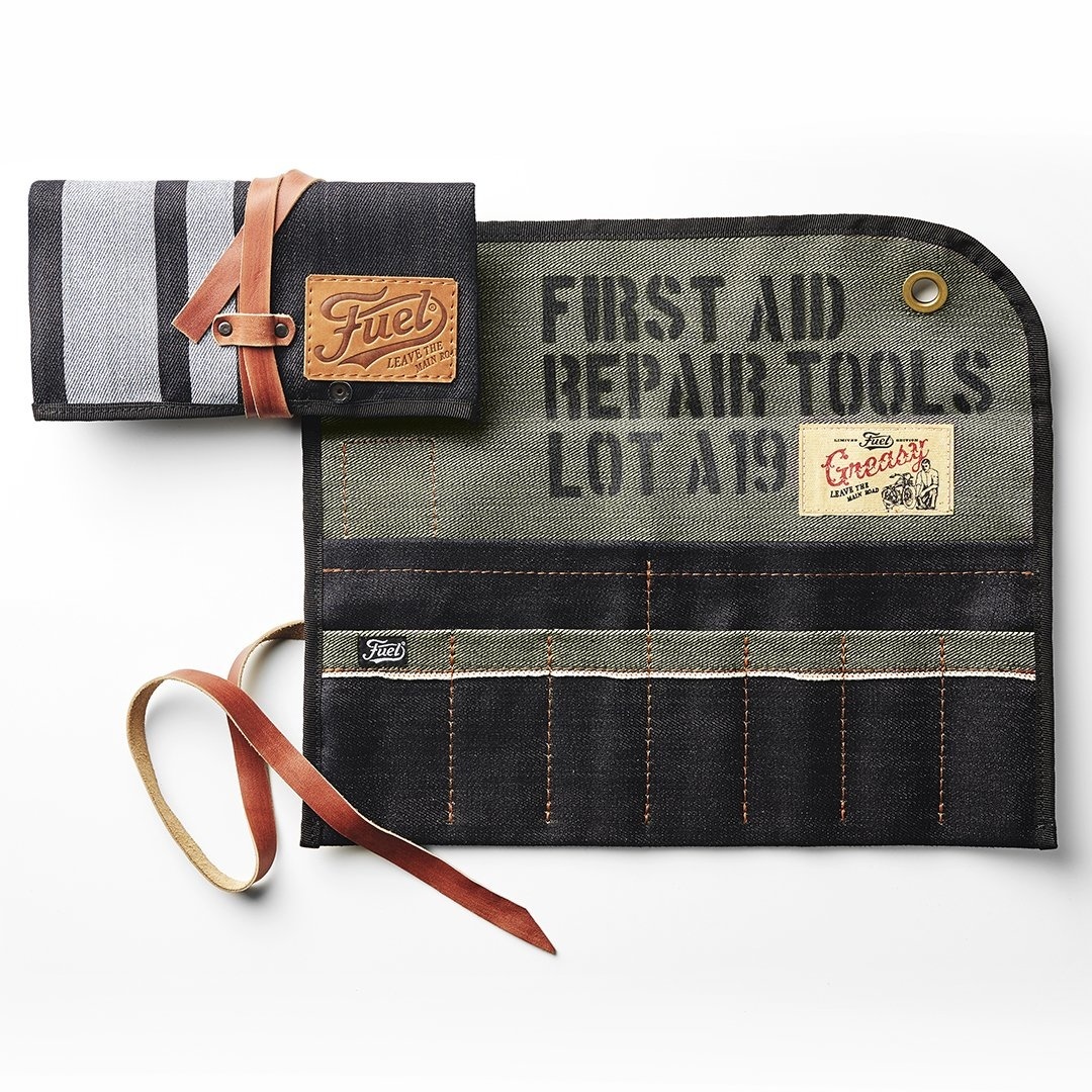 Vind je het snel leuk en wanneer dingen een beetje ruw worden? Maar dit betekent ook dat je soms iets kapot maakt op je bike? Dan is Fuel's First Aid Kit Tool Roll een must-have voor u . Het product is gemaakt van Japans hoogwaardig denim en was handgemaakt in Barcelona .
