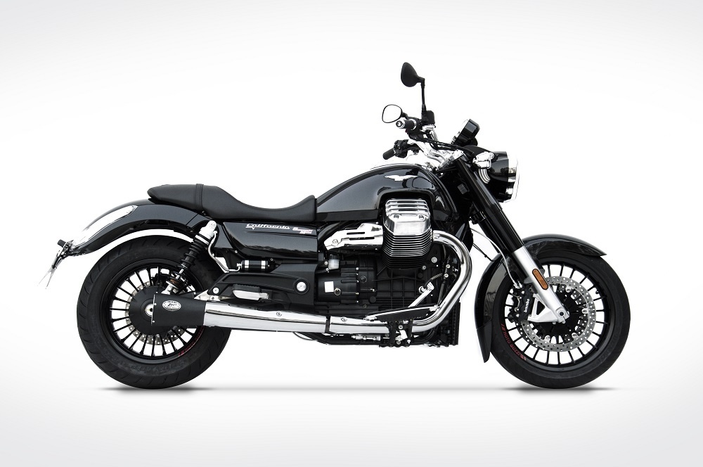 Uitlaat Moto Guzzi California, 14-, RVS Zwart Rond, slip on 2-2, E-Marked