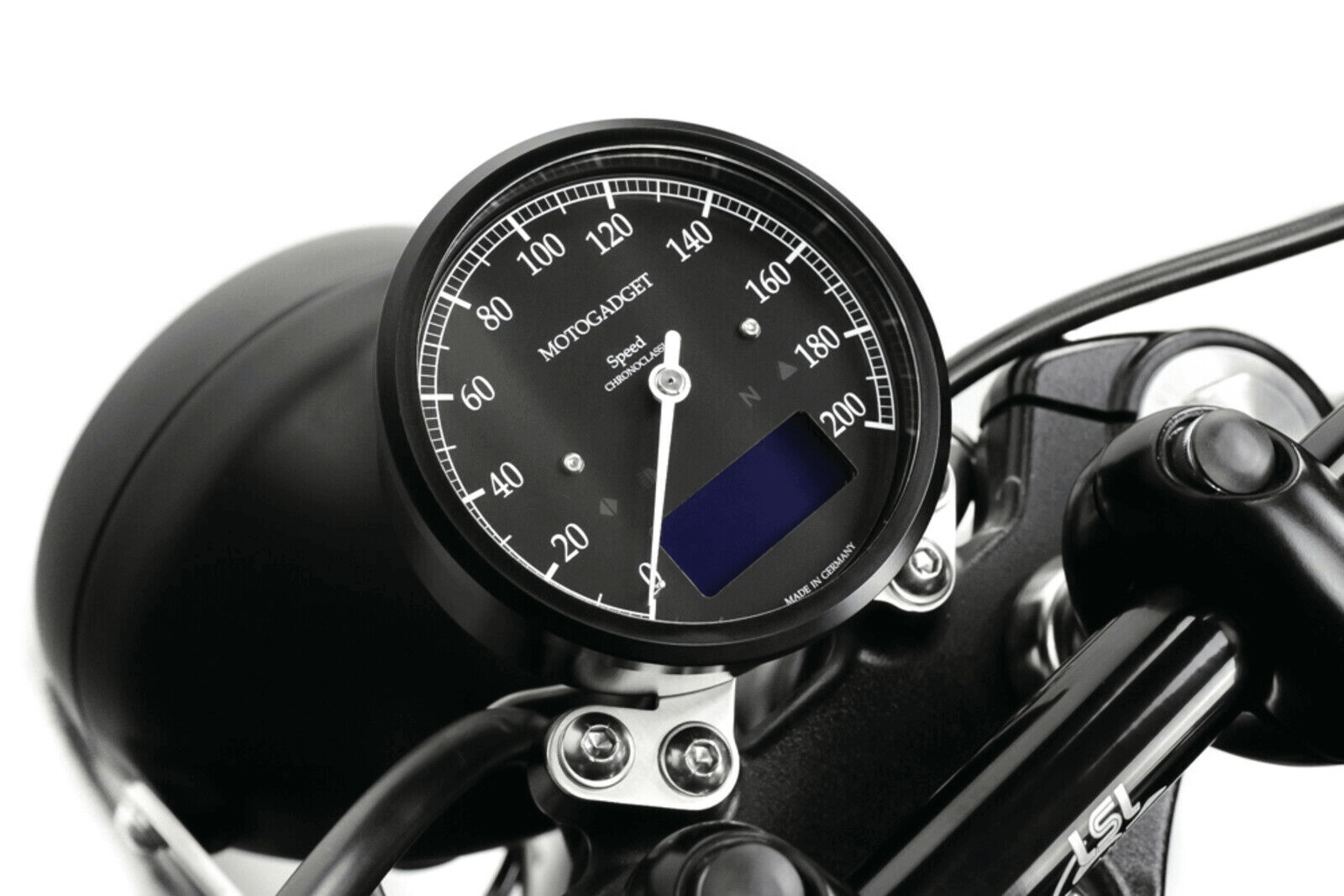 - Nette voorkant, dankzij de welgevormde Motoscope Chronoclassic-snelheidsmeter