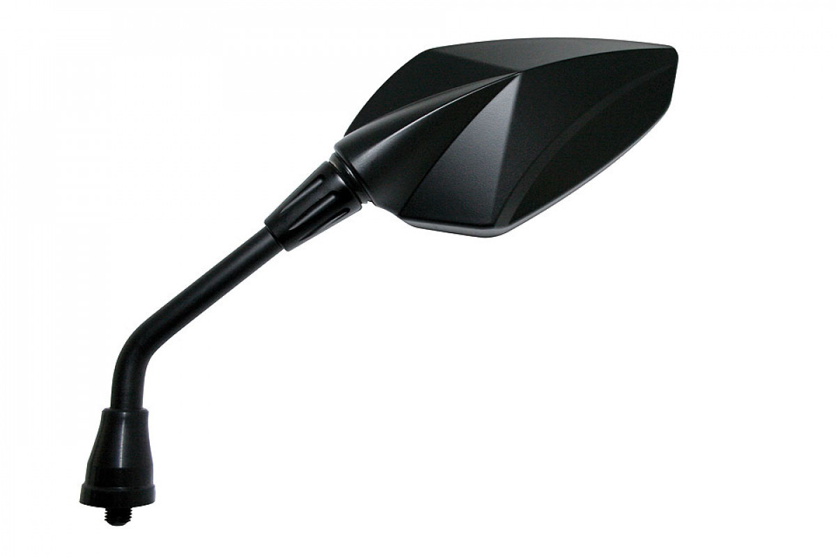 matzwarte universele spiegel in een sportief design. De kunststof spiegel is versterkt met een CNC-gefreesde verbindingshuls. E-goedgekeurd.