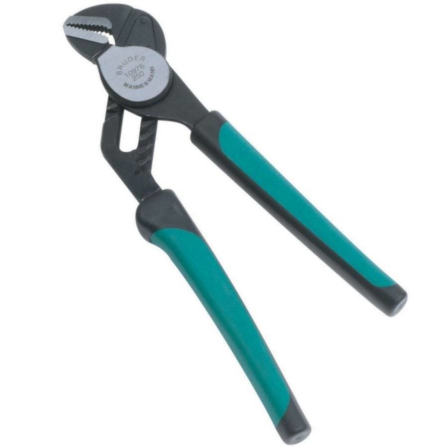Waterpomptang 250 mm / 7,5" met opgelegd scharnier en inwendige veer waardoor de bekken zich automatisch aanpassen aan de juiste maat (eenhandsbediening). Werkt zeer snel, efficiënt en veilig. Leverbaar in 2 maten.